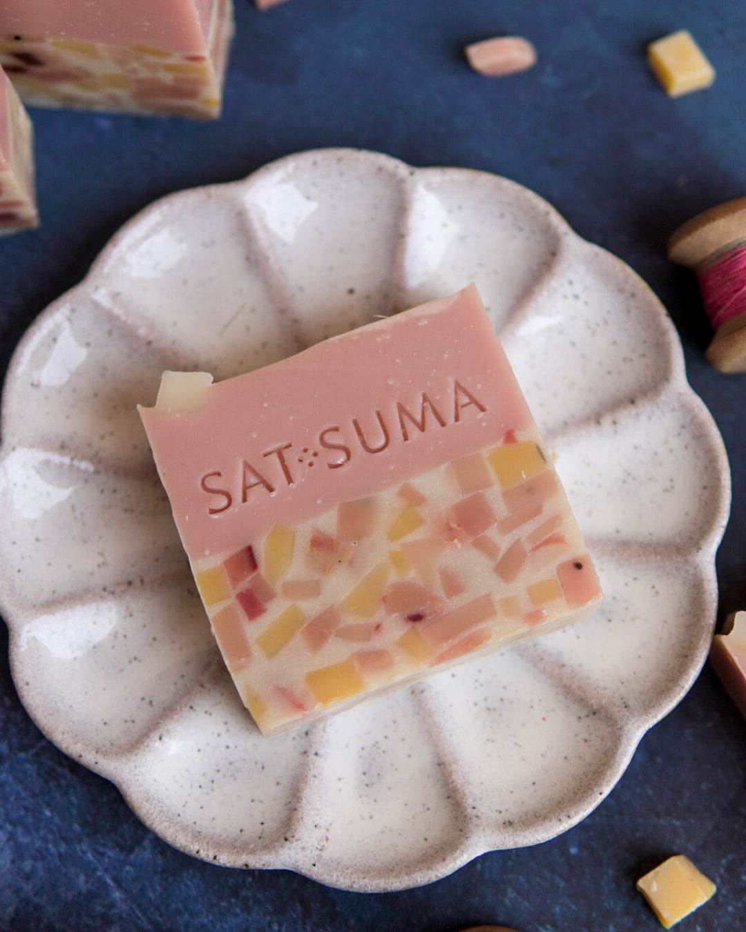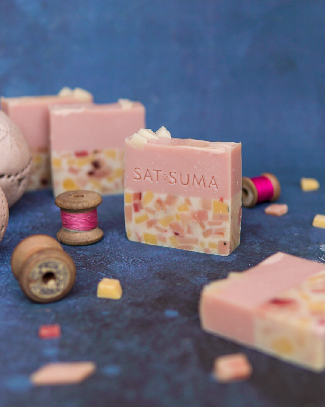 In a pastiche of colours, tiny bits of soap come together to create the iconic terrazzo effect. Atop this tile-like layer stands a solid pink layer giving the soap a striking look. Scented with a heady blend of exotic peach, peony blossom and amber, this soap smells every bit as enchanting as it looks.